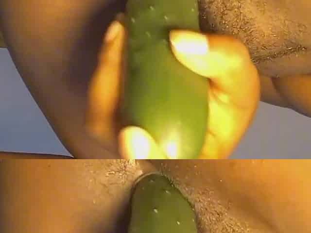 Banging my lascivious cunt with large cucumber