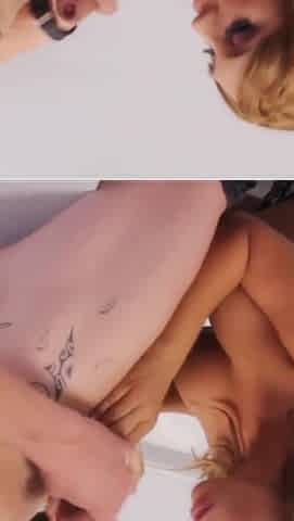 Slim yet super breasty blond lesbo hotty seduces her brunette hair ally for a juicy screw