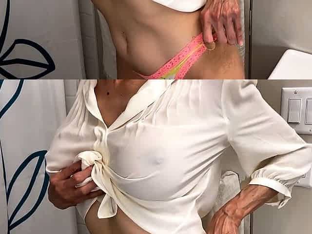 Curious about what’s beneath my college uniform? Lyna Fleur slowly strips out of her wet blouse after school