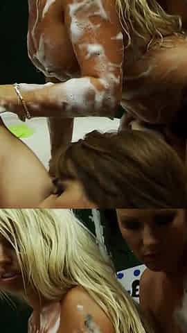 Hot esbian honeys love playing with soap and their wet pussies
