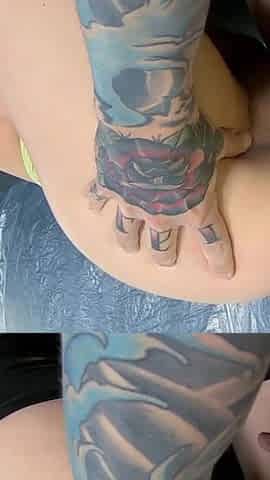 Wet tattooed raven babe Sahron with big boobs masturbates
