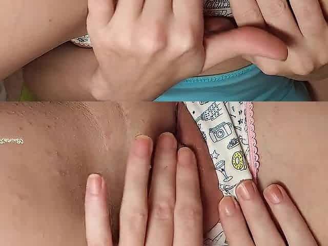 Masturbating in advance of gonna daybed! - Twat trickling juice close up