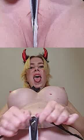 Sexually excited little whore widens her moist twat wide – Begging for jock and cum. Halloween 2025