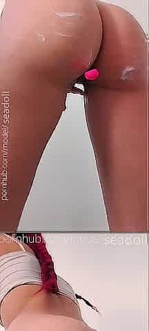 my girlfriend's narrow snatch is impaled on a jock and squirts from the jizz