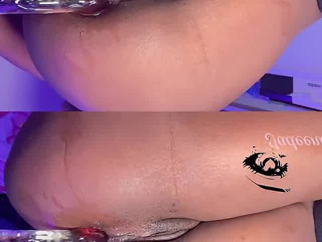 Banging myself with my glass toy! Close up.