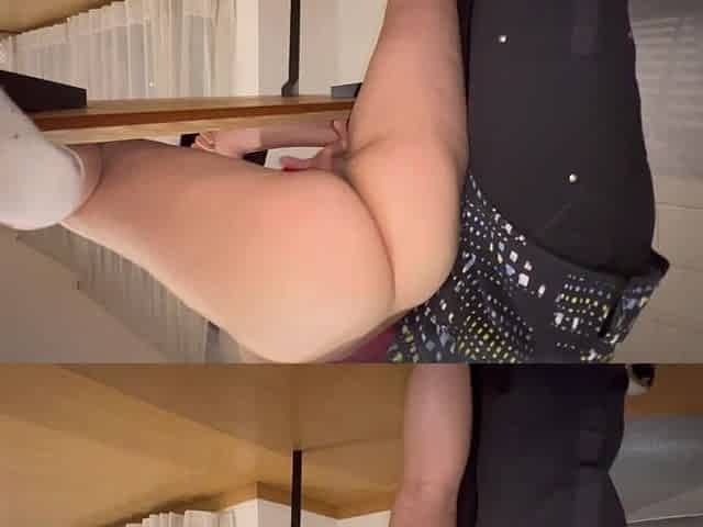 Woman Masturbating with Sex toys at Work and Serving Customers in Moist Yoga Panties