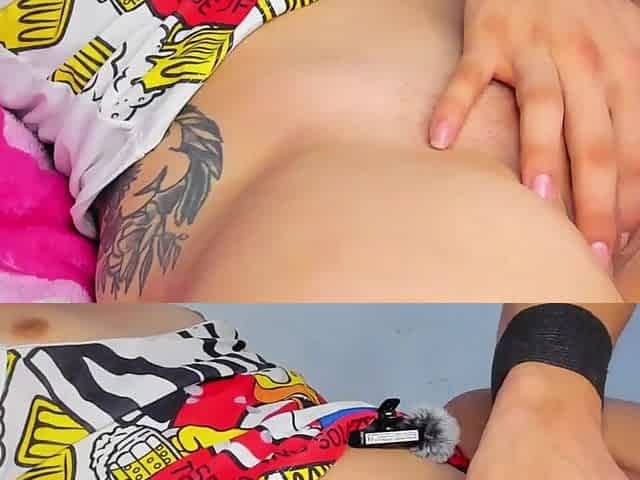 concupiscent transboy groans during the time that fingering hairless moist male snatch
