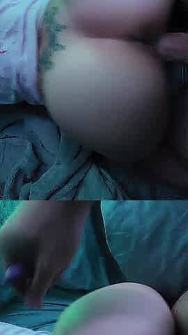 Hot wife with hairless twat masturbates doggy style and receives her spouse's sexy jizz