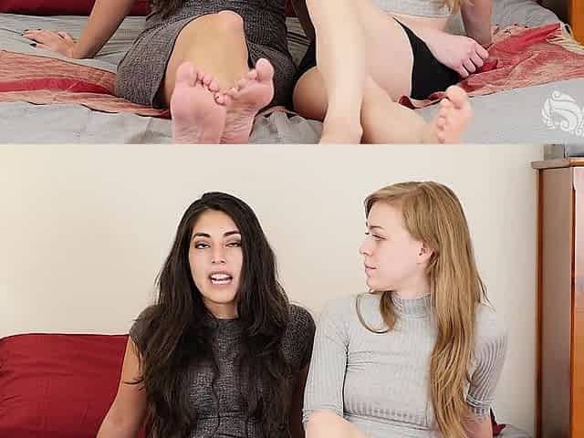 Golden-haired Brittany Andrews And Brunette hair Brandi Mae Lick Their Vaginas!