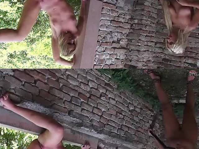 Blonde slave in strappado whipped Isis Love, Kaylee Hilton