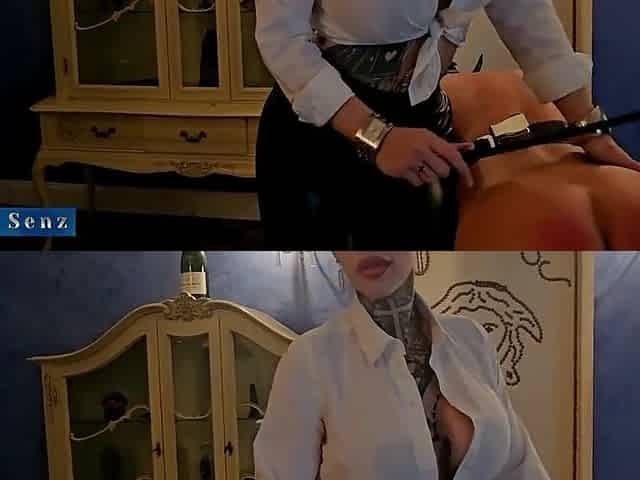 Anal Dildo Fixed, Electric Shocks to Nipples and Dick, Repeated Beatings with a Cane, by Mistress to Slave Butler Discipline