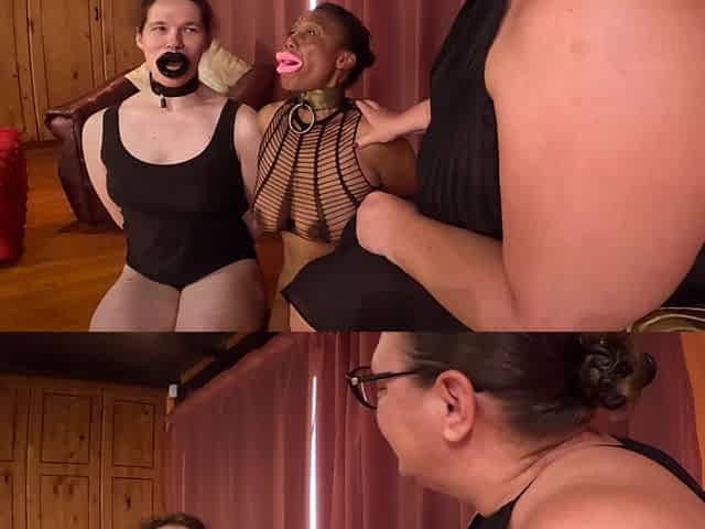 Female domination play session - dominatrix threesome with slave and photographer
