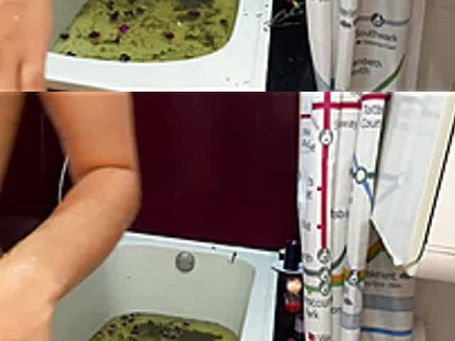"Arab having a spa day, having a squirt in the jacuzzi"