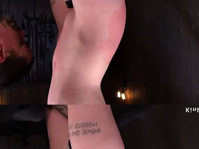 Gagged and clamped slave rear whipped