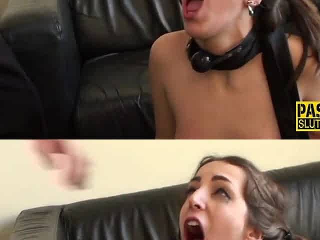 UK sub Montse Swinger ballgagged and flogged before deepthroat and rough face fucking