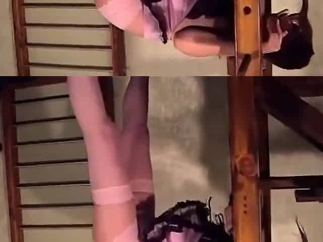 Amateur slave bdsm while hogtied upside down