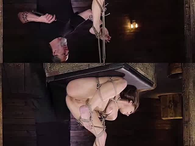 Shaved Pussy Babe In Hogtie Whipped