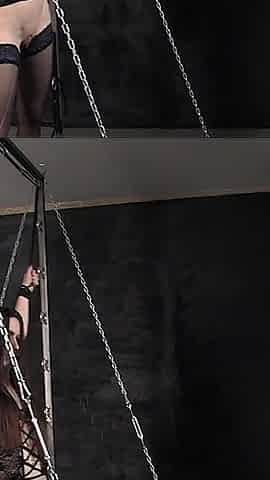 Pussy Hook Partial Aoh Suspension with Clover Nipple Clamp Predicament Bondage with Electro & Whipping