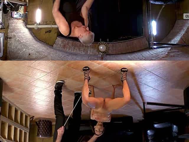 Domme With Whip Requires Three Naked Male Slaves To Exercise And Fan