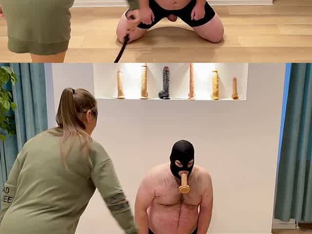 Flagellating, femdom humiliation