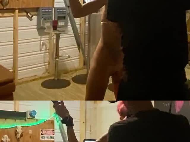 Bent over brunette hair whipped in device (Aidra Fox)