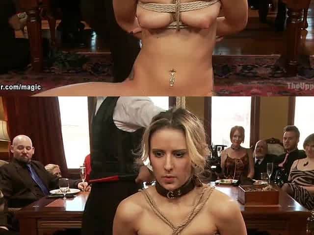 Tied slaves sucking large ramrod at party (Iona Grace, Dallas Blaze)