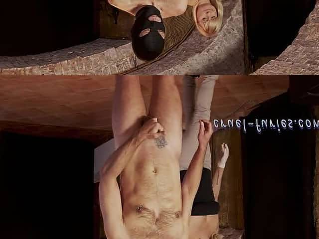 Serf in leather mask cunt slapped