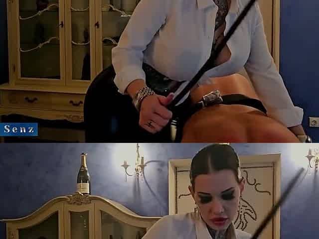 Horny Dominant Lesbian Mistress Spanking And Whipping Tight Slave