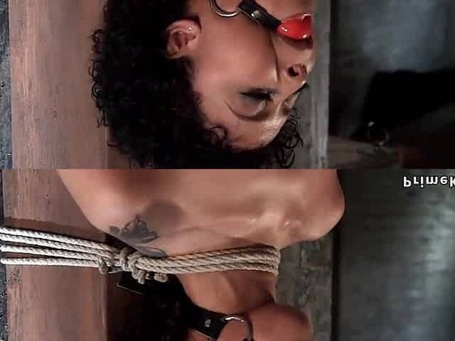 Slim Brunette hair Belted and Tormented in Hot Constricted Costume with Rope Servitude and Booty Drubbing