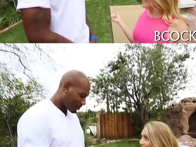 Naughty White Floozy Sucking Large Ebony Schlong Outside BBC