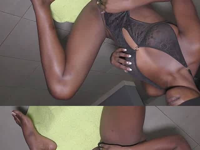 Sultry ebony in lingerie lets a white boy have her in doggy style