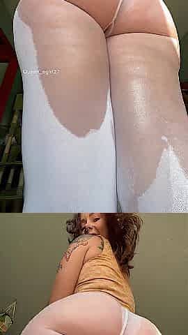 POV from above, Pawg in nylons oils up and rips 'em to play with buttplug and clap cheeks
