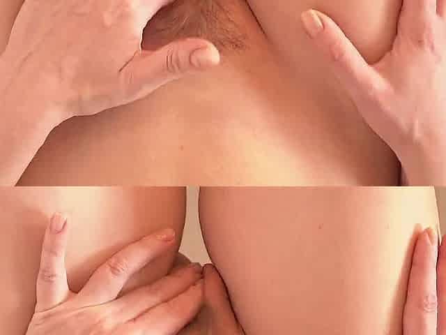 Screwing the bushy snatch and pink little butt of this breasty honey.