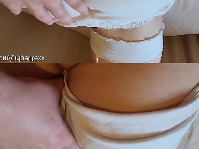cumming on her white lace pants, and this babe smears my cum on her abdomen