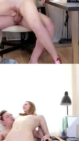 Sexy blonde in high heels gives a wild blowjob and passionate pussy licking