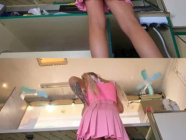 nasty little whore shows off to truck drivers and motorcycle couriers at the window