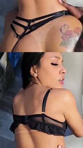 "Asian Whore with Small Boobs Enjoys Riding Mutant Cock Outdoors"