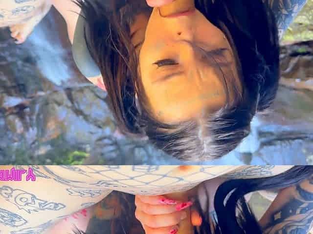 Tattooed hottie takes a big cock at a public waterfall for cash!