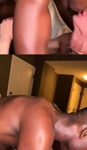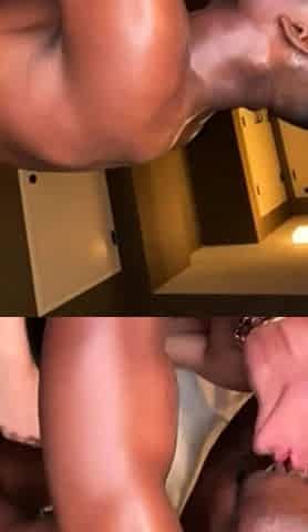 "Black whore rides hung studs hard cock while he eats her friends pussy"