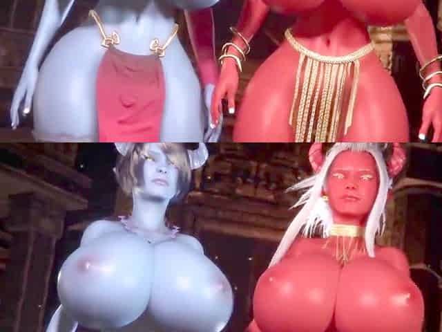Ada Wong in a fancy red dress shows off her huge boobs that bounce as she struts