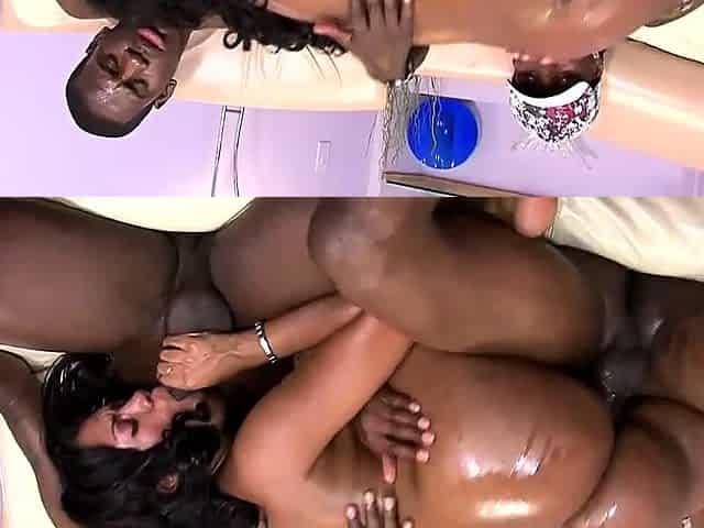 Hawt Black Whore with Curly Twat Rides Sex toy and Groans for Her Boyfriend