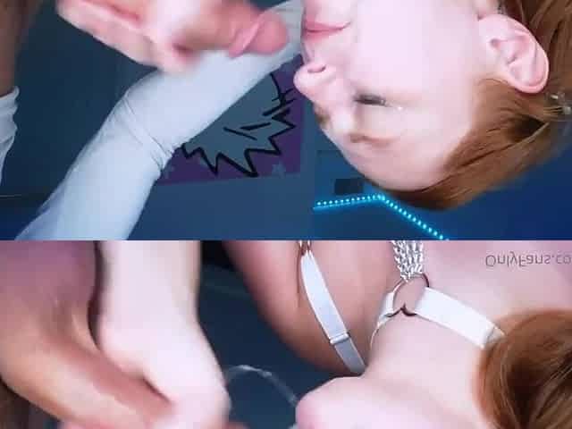 Glamorous, red haired teen is widening her legs wide open during the time that masturbating on the chair