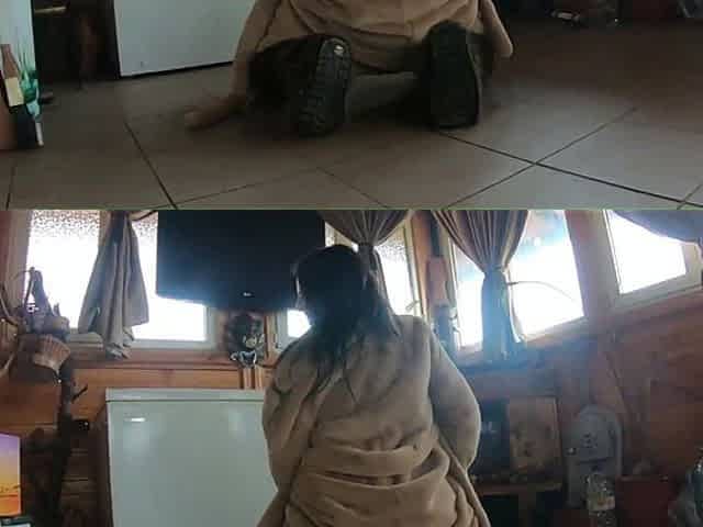 Golden Dress, Fur & Smoking Hairy Pussy, Deep Blowjob & Hard Doggy on a Freezer