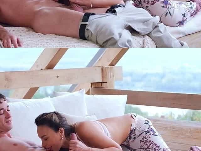 Masturbates and Handjob a Guy on Stream - Licks Cum Off Her
