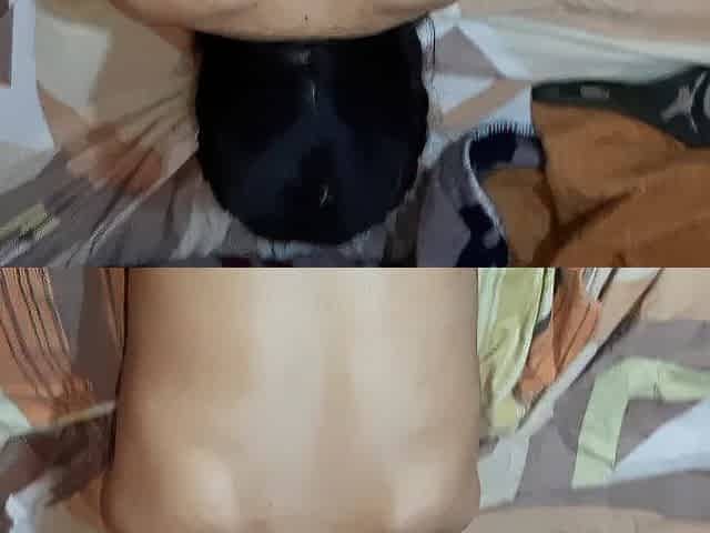 Screwing my cute neighbour with my buff boyfriend watching jerking off his petite wang