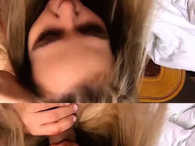 Blonde Teen Gives Amazing Blowjob and Takes Huge Cumshot on