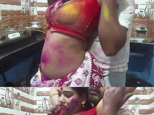 Beautiful Bengali Bhabhi Enjoy Holi Special with Her Neighbours Applied Lot of Colors in Hindi