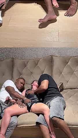 The 1st time the cuckold let his hotwife be with 2 ebony boyz.