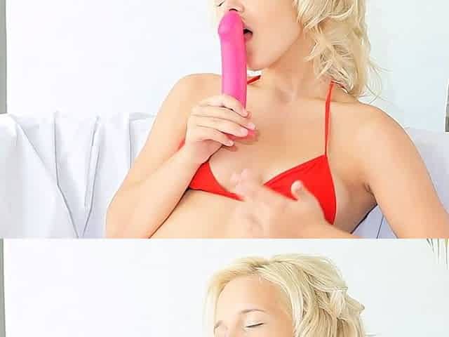 Blonde tight pussy babe solo toy fun in glamour masturbation