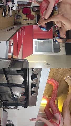 Coarse sex with slim wife at the kitchen